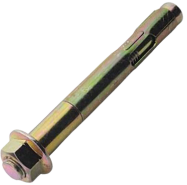 Описание и особенности: Элементы анкерного болта изготовлены из стали, защищенной от коррозионного разрушения двухслойным покрытием – пассивация + оцинковка. В комплект изделия включена разжимная цанговая втулка с помещенным внутрь болтом, имеющим головку в форме усеченного конуса, шайба и шестигранная гайка. Перед монтажом анкера в несущем основании сверлят глухую скважину, с диаметром и глубиной, равные с такими же параметрами у крепежа. Затем крепеж забивают молотком внутрь отверстия и начинают фиксировать там, затягивая ключом гайку до упора. Из-за этого конус смещается, расширяет втулку и прижимает ее к внутренним стенкам скважины.