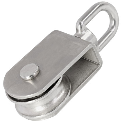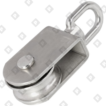 Блок такелажный с латунь-шкивом это элемент такелажного оборудования роликового типа с канавкой для пропуска троса или каната. Блоки применяют для изменения направления движения канатов, для изменения направления передаваемого по канату тягового усилия, а также для уменьшения тягового усилия, необходимого для перемещения или подъема груза. Блоки такелажные для канатов выполнены из нержавеющей стали, а шкив из латуни.